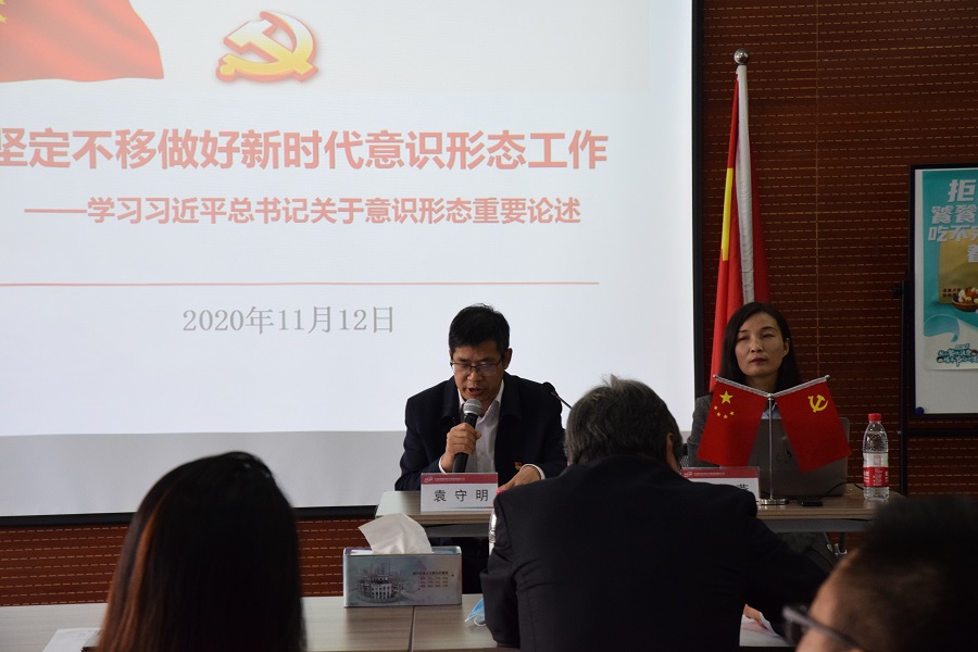 省政府驻上海办事处党组书记、主任袁守明指出,习近平总书记关于意识形态工作的系列重要论述,为我们做好新时代意识形态工作提供了根本遵循和方法路径。必须从更高的政治站位看待意识形态现象及有关问题,旗帜鲜明坚持党管宣传、党管意识形态,牢牢掌握意识形态工作的领导权、管理权、话语权。他要求,一是要坚守“生命线”,坚定政治信念。坚持党组织负总责、主要领导亲自抓、分管领导具体抓、部门合力抓,多措并举,多方发力,推动党员干部切实树牢“四个意识”,坚定“四个自信”,做到“两个维护”;二是要拧紧“总开关”,加强理论武装。要以深入学习习近平新时代中国特色社会主义思想为核心内容,进一步学习党的十九大和十九届二中、三中、四中、五中全会精神,学习《习近平谈治国理政》一、二、三卷,及时跟进学习习近平总书记重要讲话精神,坚持理论联系实际,学用结合,学以致用,在工作中全面准确贯彻落实;三是要掌控“主战场”,坚持正确舆论导向。要紧紧围绕服务沪滇两地经济社会发展大局,强化舆论引导,弘扬主旋律,传播正能量;四是要扭住“牛鼻子”,落实好工作责任制。以强烈的政治责任感和担当精神把意识形态工作纳入重要议事日程,把党管意识形态工作落实落细。