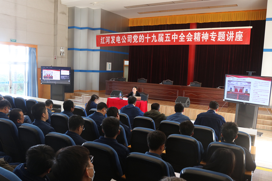 本网讯(通讯员 彭中武 报道)12月9日,红河发电公司开展专题讲座,解读党的十九届五中全会精神,帮助党员群众深刻领会准确把握全会精神实质,引导党员群众在国家未来发展的新征程中,坚定信心、奋发有为。