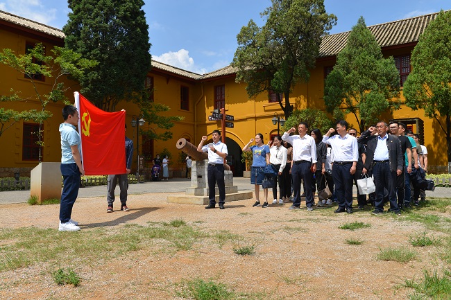 参观后,全体人员来到庄严的炮台前,在云南榕耀党委书记杨建军的领誓下重温入党誓词,巩固党员初心、坚定责任使命。