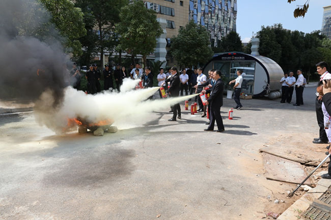 培训活动还组织参训人员到云南华铄消防安全职业培训学校实训基地进行消防设施、器材实操训练,提升员工实际操作技能水平。为切实提高集团消防安全能力,消除火灾隐患,提高员工疏散逃生的能力,集团在华铄消防培训学校讲师的指导下开展消防应急演练。演练活动由黄传兵副主任担任总指挥。演练中,全体人员按预定方案,快速、准确、有序地撤离到了指定地点,通过对灭火疏散、安全救护等科目演练,切实增强了集团消防队员默契度、专业度。同时,参训学员还参与了干粉灭火器的现场学习和体验。培训讲师针对演练中出现的问题进行了点评,进一步增强了员工的应急逃生自救能力。